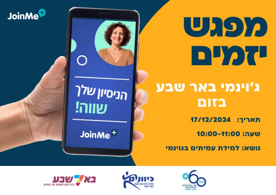 ג'וינמי הינו אתר לפיתוח יזמות של אזרחים ותיקים. הפעילויות באתר הינן ביוזמה של אנשים פרטיים ובאחריותם הבלעדית. אין לרשות המקומית, לארגונים החברים בקהילה או לחברת ג'וינמי אחריות על התכנים או על ההתנהלות בפעילות עצמה" השתתפות בכל פעילות מוצעת הינה על אחריות המשתתף והמארגן בלבד.