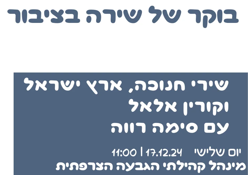 שירה בציבור - שירי חנוכה, ארץ ישראל וקורין אלאל עם סימה רווה