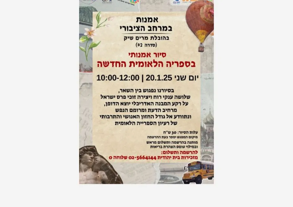 לסיור אמנות מיוחד במינו בספרייה הלאומית החדשה ביום ב' 20 בינואר 2025 בשעה 10:00