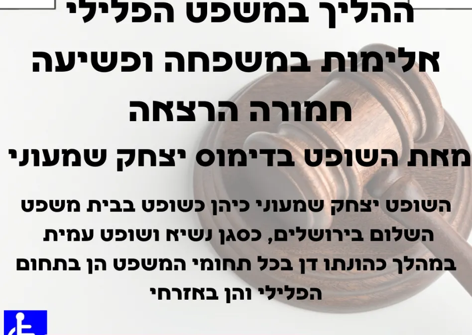 ההליך במשפט הפלילי אלימות במשפחה ופשיעה חמורה הרצאה מאת השופט בדימוס יצחק שמעוני