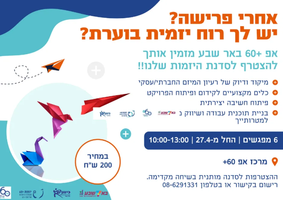 ג'וינמי הינו אתר לפיתוח יזמות של אזרחים ותיקים. הפעילויות באתר הינן ביוזמה של אנשים פרטיים ובאחריותם הבלעדית. אין לרשות המקומית, לארגונים החברים בקהילה או לחברת ג'וינמי אחריות על התכנים או על ההתנהלות בפעילות עצמה" השתתפות בכל פעילות מוצעת הינה על אחריות המשתתף והמארגן בלבד.