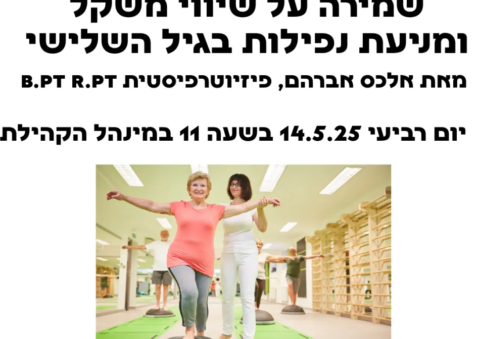 שמירה על שיווי משקל ומניעת נפילות בגיל השלישי מרצה-אלכס אברהם, פיזיוטרפיסטית B.PT R.PT