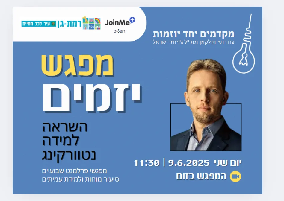 ג'וינמי הינו אתר לפיתוח יזמות של אזרחים ותיקים. הפעילויות באתר הינן ביוזמה של אנשים פרטיים ובאחריותם הבלעדית. אין לרשות המקומית, לארגונים החברים בקהילה או לחברת ג'וינמי אחריות על התכנים או על ההתנהלות בפעילות עצמה" השתתפות בכל פעילות מוצעת הינה על אחריות המשתתף והמארגן בלבד.