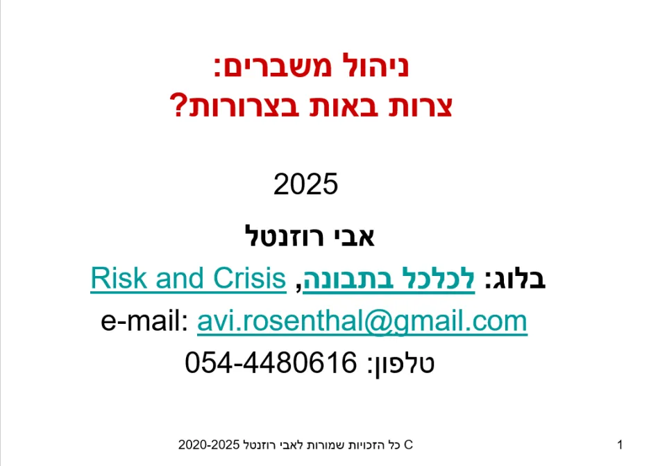 צרות באות בצרורות" - כיצד מנהלים משברים?
