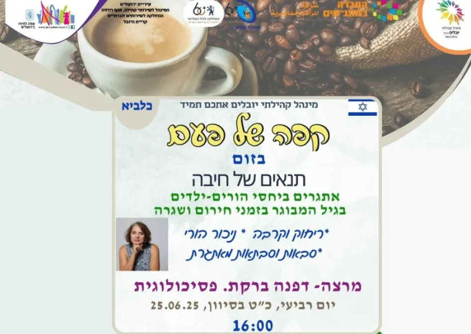 קפה של פעם בזום: יחסים בין הורים וילדים בגיל המבוגר- הפסיכולוגית דפנה ברקת