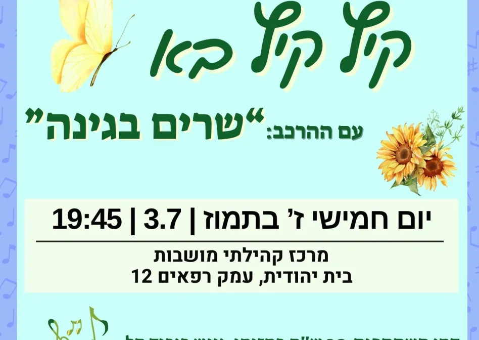 ערב שירה בציבור עם ההרכב 'שרים בגינה'