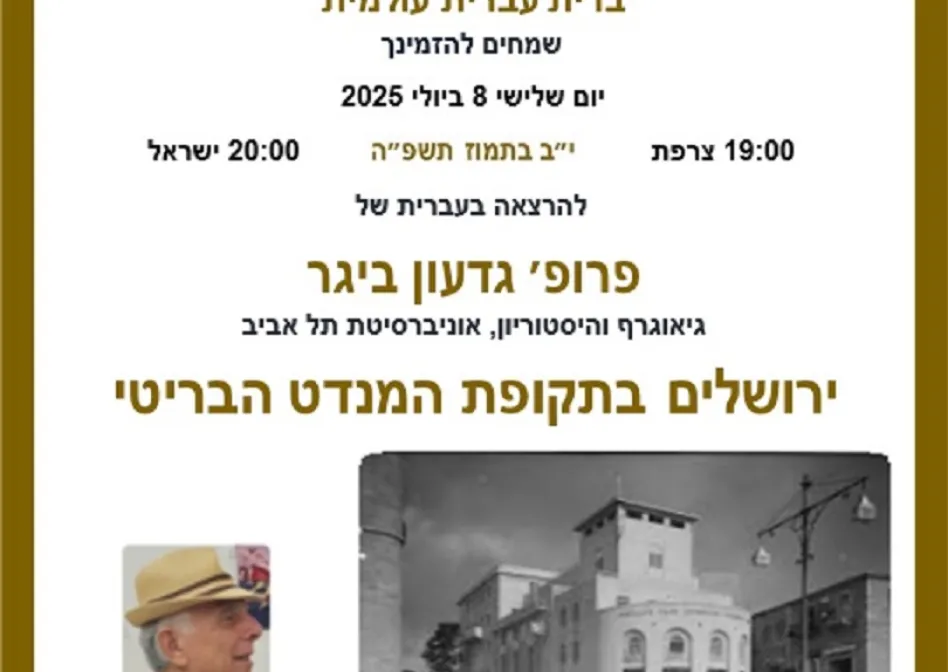 פרופ׳ ביגר : ירושלים בתקופת המנדט הבריטי