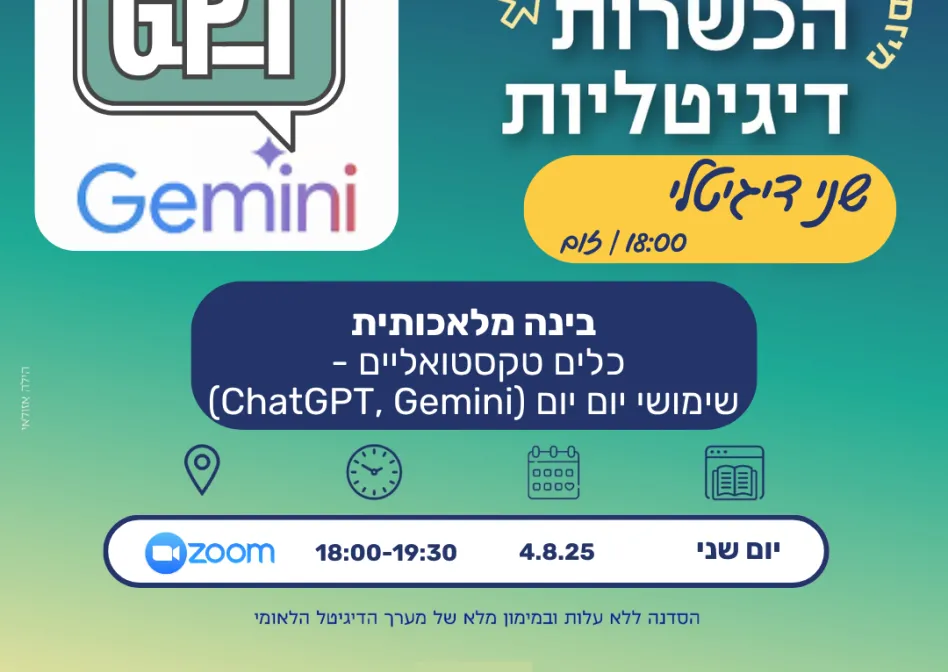 בינה מלאכותית - כלים טקסטואליים - שימושי יום יום (ChatGPT, Gemini)