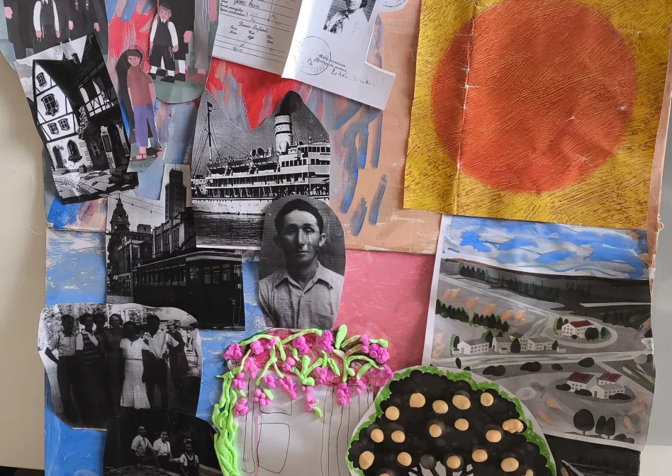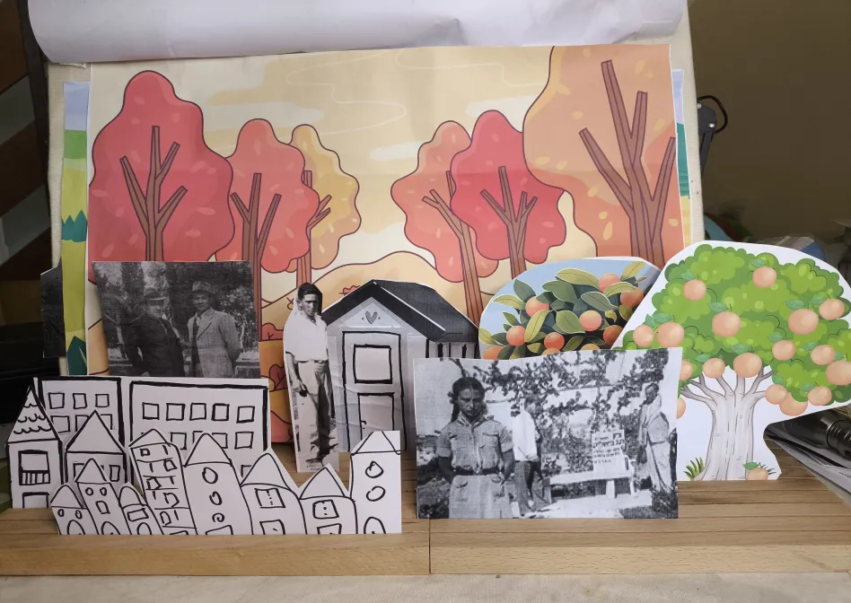 איך נתעד ונספר לנכדינו את הספור הלא מוכר אבל המעניין של הורינו (סבא רבה וסבתא רבה של נכדינו) ? נתעד וניצור עבורם (ואפשר גם בשיתופם) הצגה דוקומנטרית אמנותית המשלבת טכניקות של תיאטרון הנייר עם צילום הקרנה וועריכת וידאו . זהו פרויקט משפחתי תעודי רב דורי, מומלץ לכל משפחה. במפגש המתוכנן תציג רבקה לאופר את ההצגה שהכינה על הוריה, סבא שמחה וסבתא אסתר כדוגמא להכנת הסיפור המשפחתי שלכם, ואני ,ישראל, אסביר את שלבי היצירה ,יצירת הסיפור, יצירת התפאורות (בעזרת ד"ר גוגל), בובות הנייר (צלומי תמונות מהאלבומים המשחתיים), השימוש בבמת החריצים, ואת השלב הסופי של יצירת הסרט והעלאתו ליוטיוב. לאחר מפגש ההכרות עם הנושא ניצור מספר מפגשים פרונטליים (במרכז קהילתי, או בבית) בהם הקבוצה תיצור במקביל כל אחד את הסיפור המשפחתי שלו. מפגשי ההדרכה חינמיים אבל ערכת במת החריצים עולה 50 שקל חד פעמי. גרסה מקוצרת וחינמית לחלוטין: יצירה קולאז' תיעודי אמנותי עם הנכדים של התמונות וצילומים של מסמכים ישנים של המשפחה. (תמונה למטה).בתוצר זה לא יוצרים הצגה אבל יש מייצג תיעודי שניתן לספר גם עליו את הסיפור. הערה: לא חייבים לשתף את הנכדים ביצירה אך ההנכדים הצעירים ישמחו לסייע בקישוט ויצירת הדמויות והתפאורות והגדולים ישמחו להיות חלק מצוות הצילום ועריכת הסרטון.