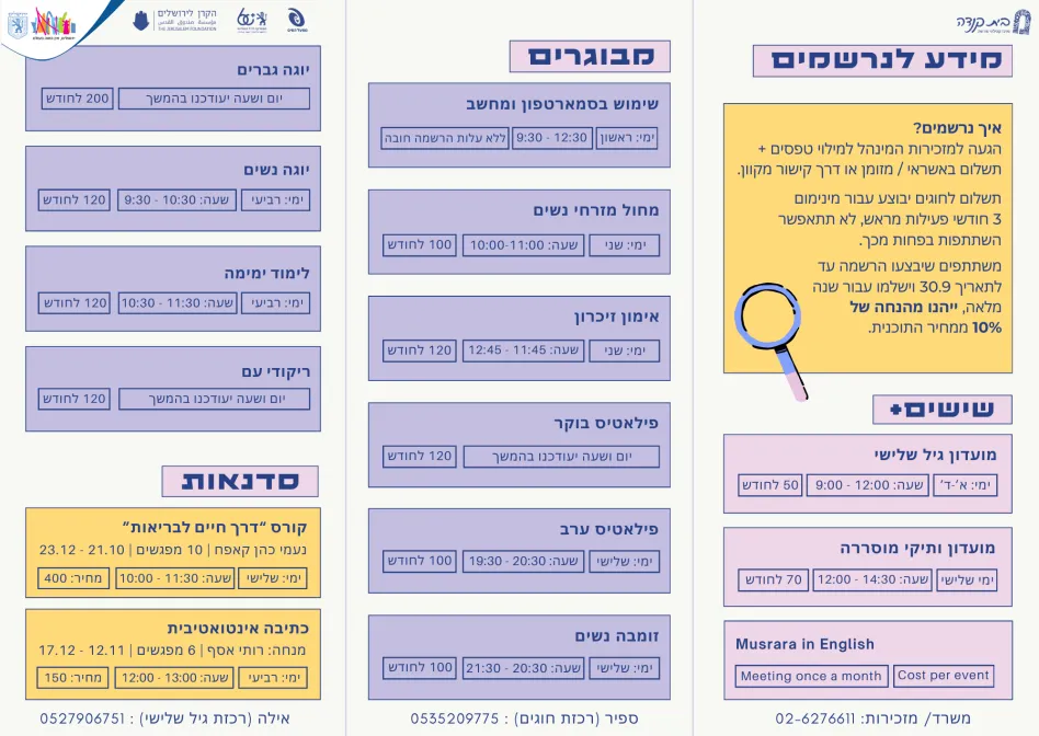 ג'וינמי הינו אתר לפיתוח יזמות של אזרחים ותיקים. הפעילויות באתר הינן ביוזמה של אנשים פרטיים ובאחריותם הבלעדית. אין לרשות המקומית, לארגונים החברים בקהילה או לחברת ג'וינמי אחריות על התכנים או על ההתנהלות בפעילות עצמה" השתתפות בכל פעילות מוצעת הינה על אחריות המשתתף והמארגן בלבד.