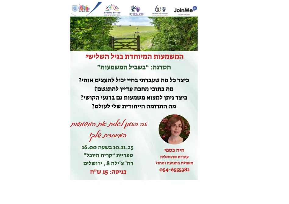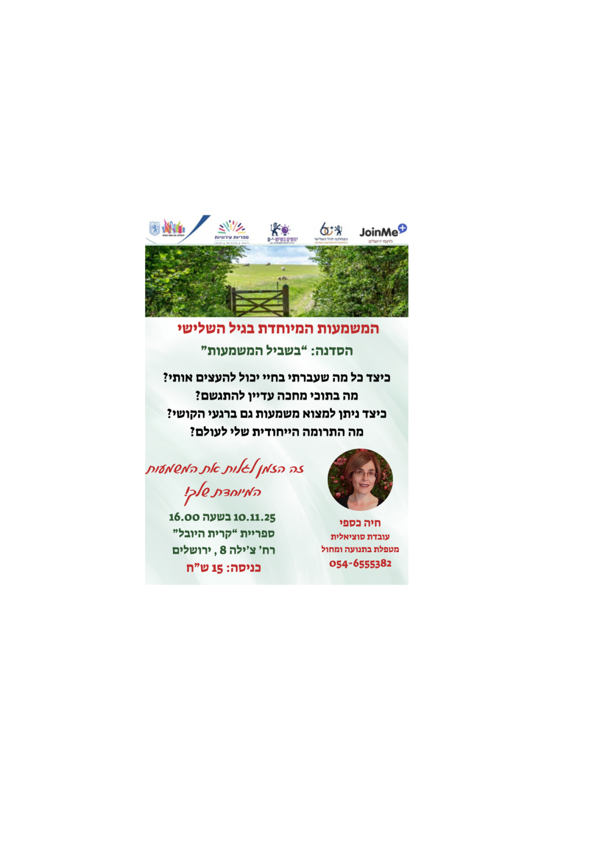 ג'וינמי הינו אתר לפיתוח יזמות של אזרחים ותיקים. הפעילויות באתר הינן ביוזמה של אנשים פרטיים ובאחריותם הבלעדית. אין לרשות המקומית, לארגונים החברים בקהילה או לחברת ג'וינמי אחריות על התכנים או על ההתנהלות בפעילות עצמה" השתתפות בכל פעילות מוצעת הינה על אחריות המשתתף והמארגן בלבד.