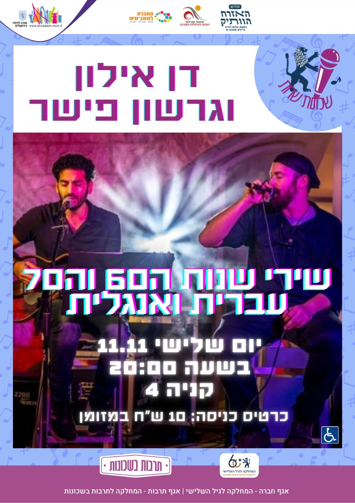 שירה בציבור עם דן אילון וגרשון פישר שירי שנות ה-60 וה-70 עברית ואנגלית