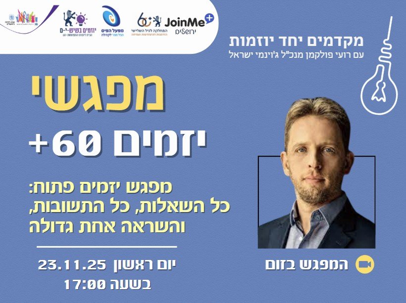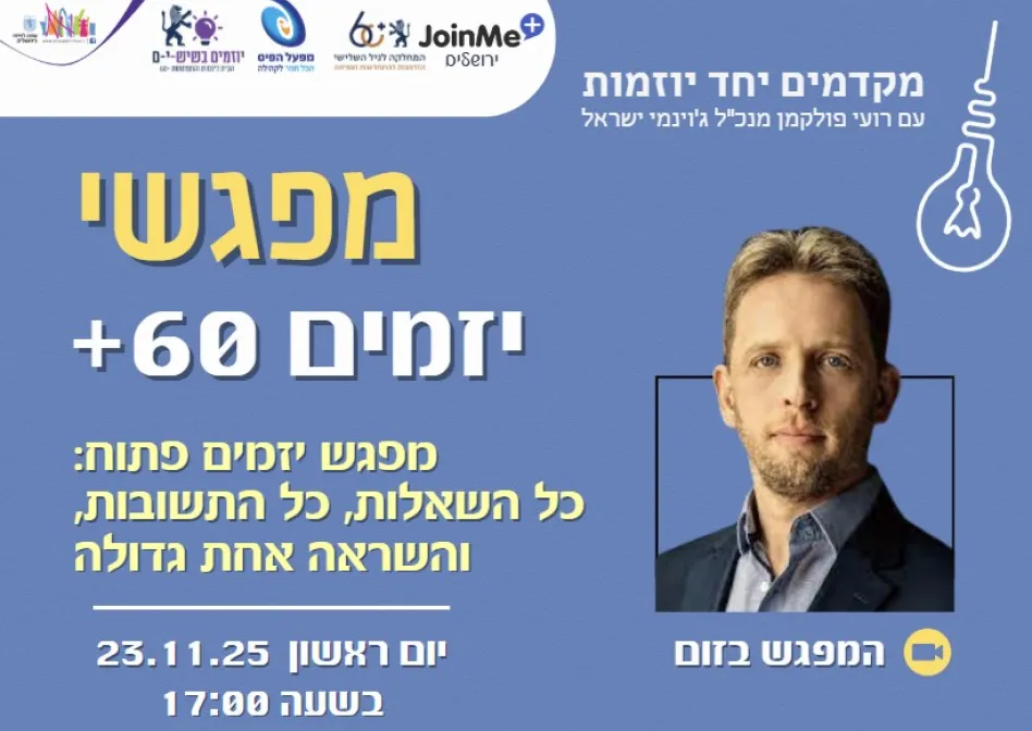ג'וינמי הינו אתר לפיתוח יזמות של אזרחים ותיקים. הפעילויות באתר הינן ביוזמה של אנשים פרטיים ובאחריותם הבלעדית. אין לרשות המקומית, לארגונים החברים בקהילה או לחברת ג'וינמי אחריות על התכנים או על ההתנהלות בפעילות עצמה" השתתפות בכל פעילות מוצעת הינה על אחריות המשתתף והמארגן בלבד.