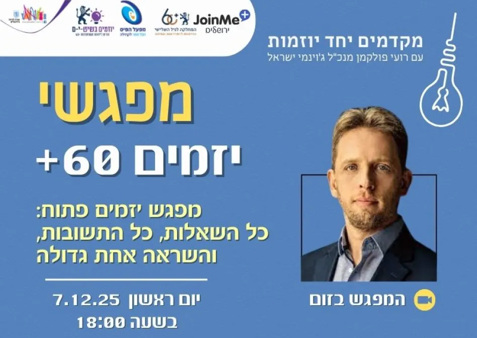 ג'וינמי הינו אתר לפיתוח יזמות של אזרחים ותיקים. הפעילויות באתר הינן ביוזמה של אנשים פרטיים ובאחריותם הבלעדית. אין לרשות המקומית, לארגונים החברים בקהילה או לחברת ג'וינמי אחריות על התכנים או על ההתנהלות בפעילות עצמה" השתתפות בכל פעילות מוצעת הינה על אחריות המשתתף והמארגן בלבד.