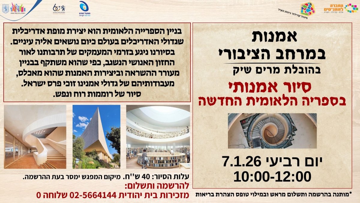 סיור אמנותי בספריה הלאומית החדשה - במועדון אמנות במרחב הציבורי עם מרים שיק