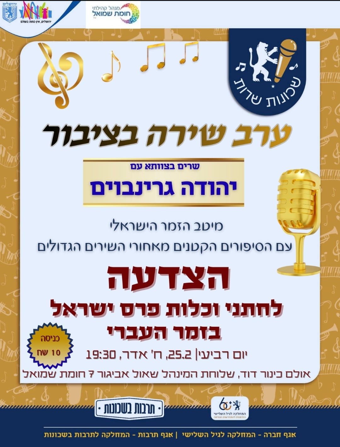 מופע שירה בציבור - הצדעה לחתני וכלות פרס ישראל בזמר הישראלי