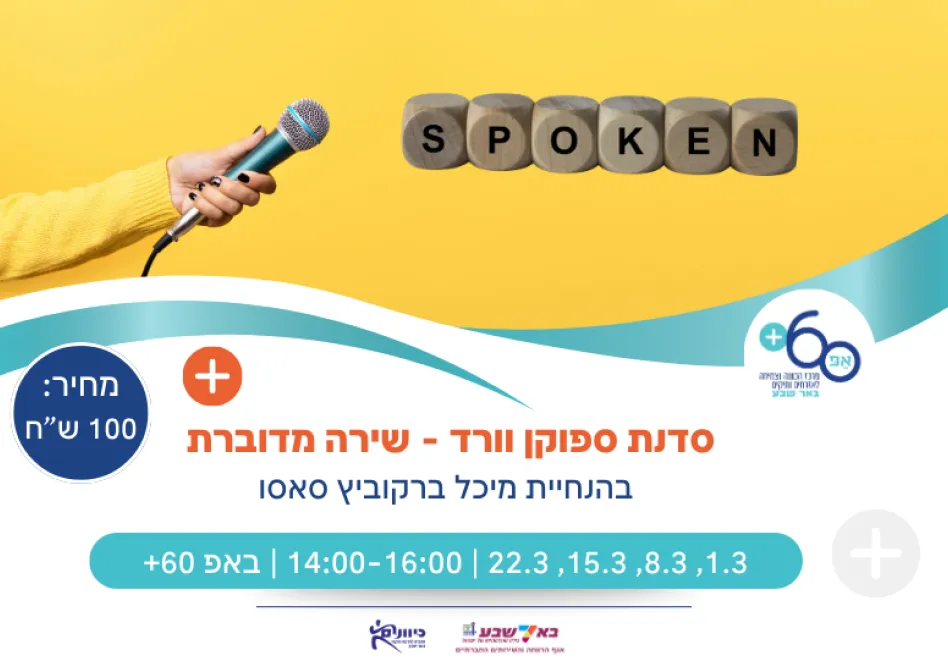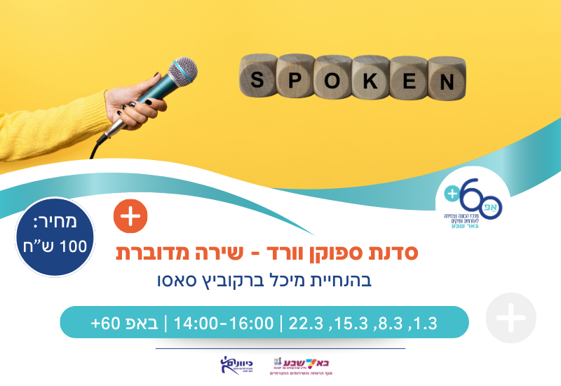 4 מפגשים בתאריכים : 1.3, 8.3, 15.3, 22.3 בשעות 14:00-16:00