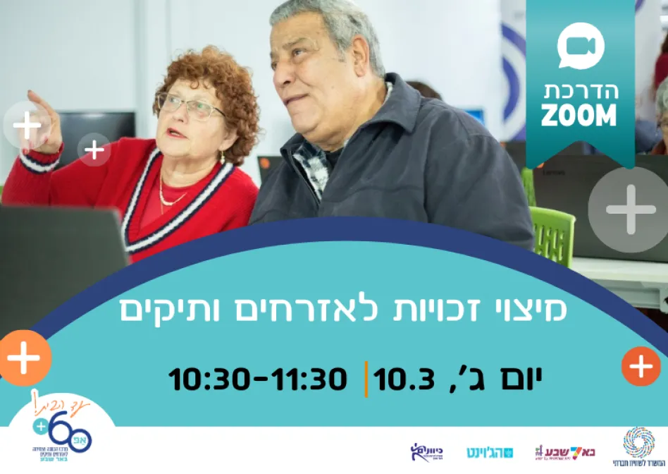 אפ 60+ חוזרים לזום - המוקד לאזרחים ותיקים - זכויות האזרח הותיק בשגרה ובחירום