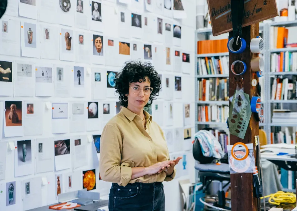 גבי המבורג פימה - אוצרת התערוכה 'כמעט תמיד אני עומדת מאחורי עצמי' בגלריית הקוביה, פוגשת את האמנית עילית אזולאי בזום חי מהסטודיו של האמנית בברלין, לשיחה והצצה אל מאחורי הקלעים של תהליכי העבודה.