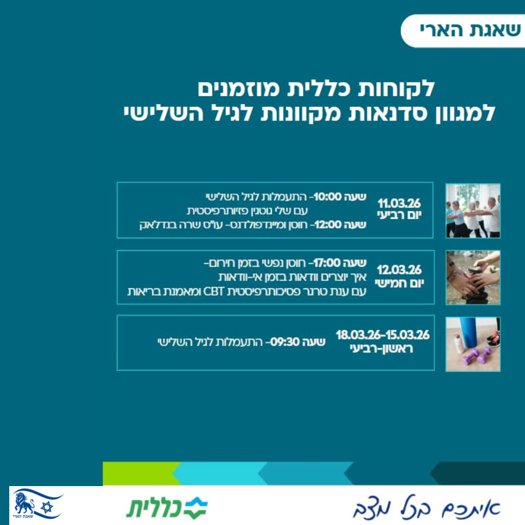כללית מחוז ירושלים מזמינה את בני ובנות הגיל השלישי להשתתף במגוון סדנאות מקוונות מהבית.