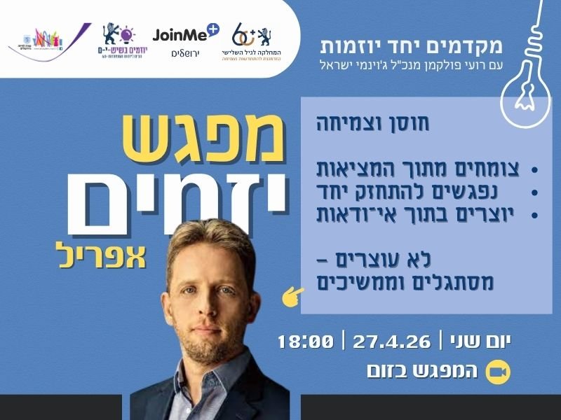 ג'וינמי הינו אתר לפיתוח יזמות של אזרחים ותיקים. הפעילויות באתר הינן ביוזמה של אנשים פרטיים ובאחריותם הבלעדית. אין לרשות המקומית, לארגונים החברים בקהילה או לחברת ג'וינמי אחריות על התכנים או על ההתנהלות בפעילות עצמה" השתתפות בכל פעילות מוצעת הינה על אחריות המשתתף והמארגן בלבד.