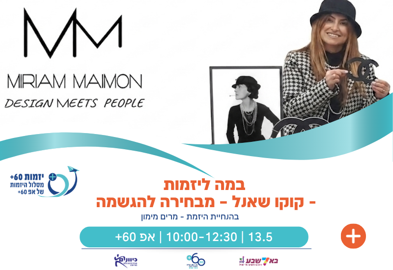✨ אפ 60+ מארח הרצאה במסגרת "במה ליזמות" - קוקו שאנל – מבחירה להגשמה מאת היזמת מרים מימון