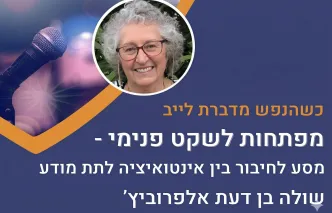 שיחת וידיאו הקשבה הדדית מיטיבה, להתפתחות אישית והחלמה שיחת וידיאו שולה בן דעת אלפרוביץ ירושלים כשהנפש מדברת לייב- מפתחות לשקט פנימי: על אינטואיציה והקשר שלה לתת מודע. יום שני 30.3 בשעה 20:00 אירוע מרץ 30, ב- 20:00 חינם הצטרפות לאירוע